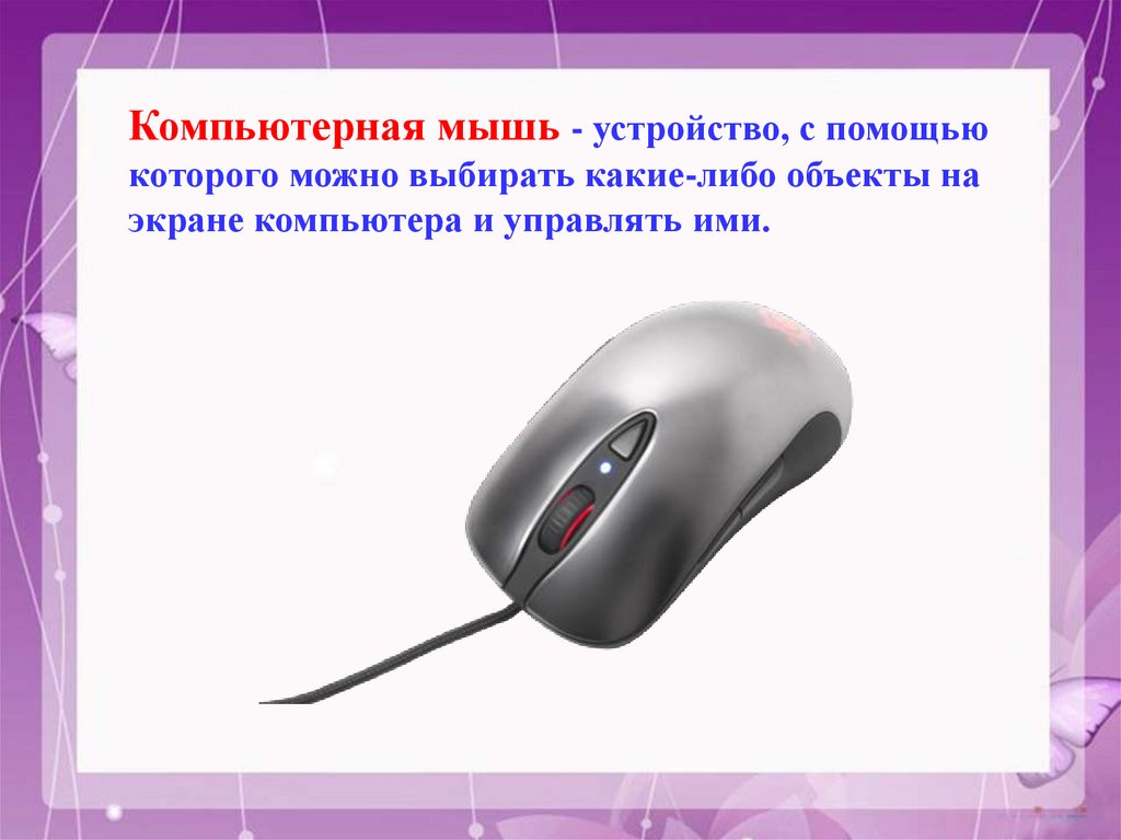 Компьютерная мышь - устройство, с помощьюкоторого можно выбирать какие-либо объекты на