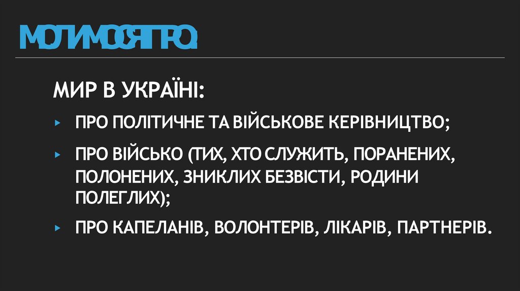 МОЛИМОСЯПРО:МИР В УКРАЇНІ: