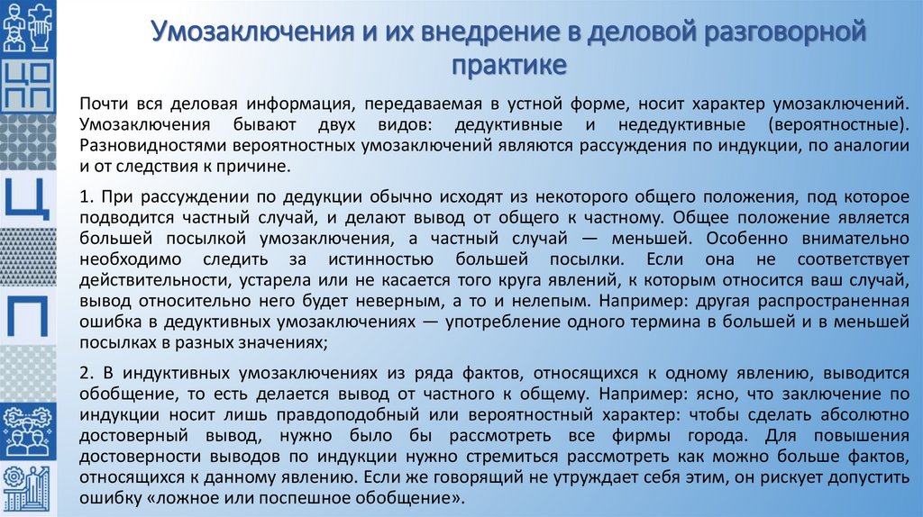 Риторический инструментарий деловой речиДля того, что деловой разговор состоялся и состоялся успешно, недостаточно знать только