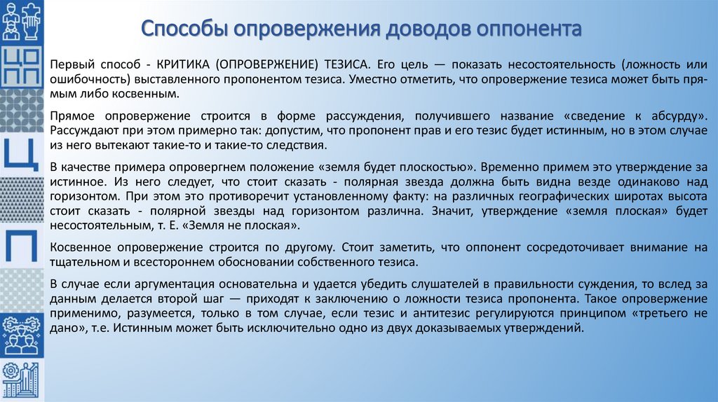 29. Способы опровержения доводов оппонента Критика Аргументов
