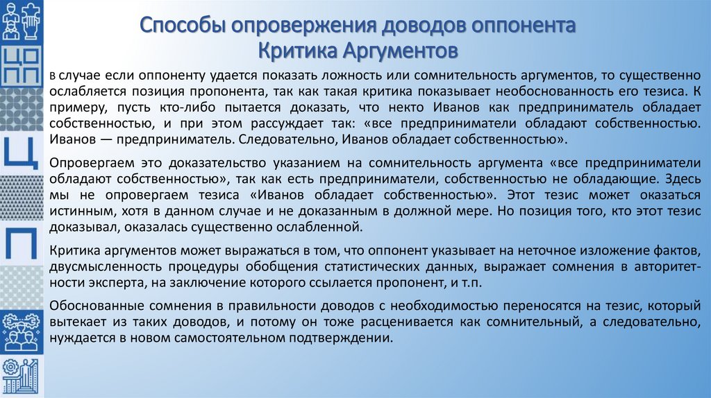 28. Способы опровержения доводов оппонента Критика Аргументов