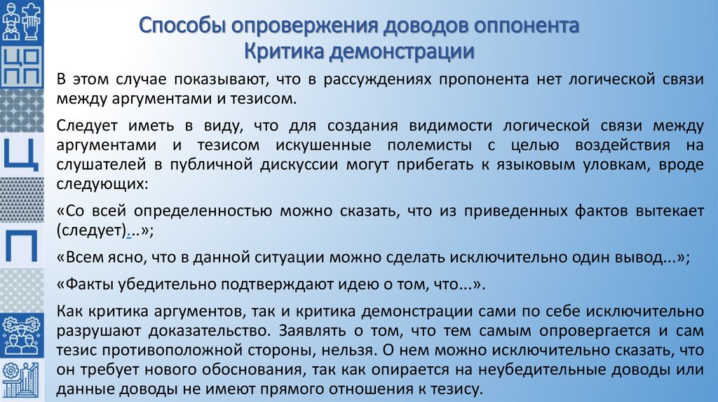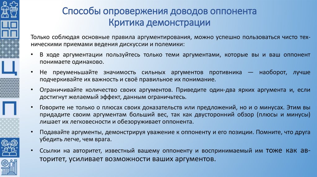 30. Способы опровержения доводов оппонента Критика демонстрации