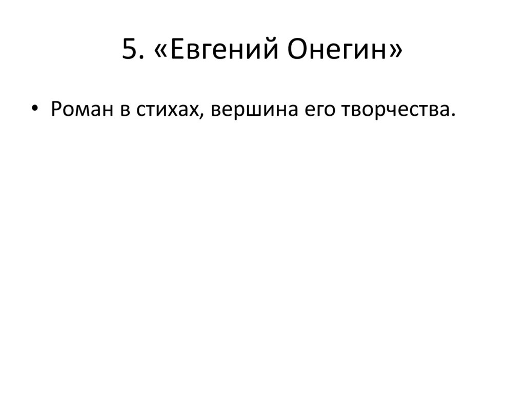 5. «Евгений Онегин»• Роман в стихах, вершина его творчества.