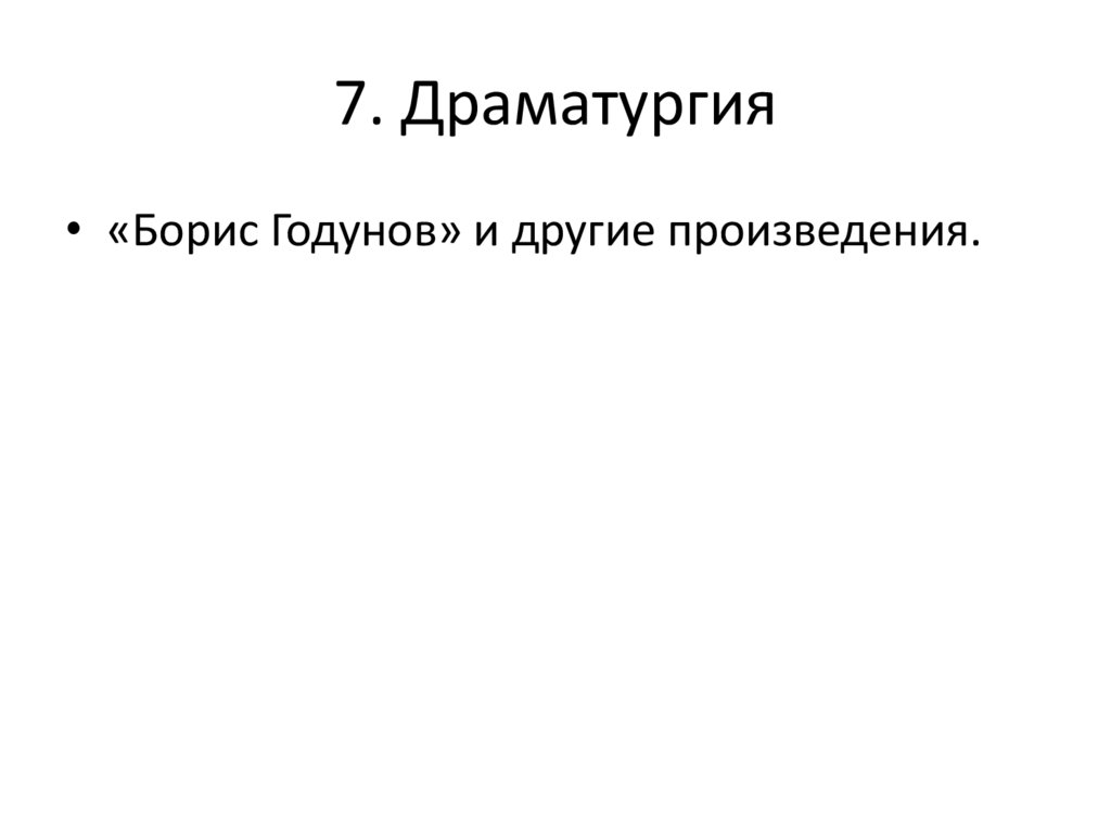 7. Драматургия• «Борис Годунов» и другие произведения.