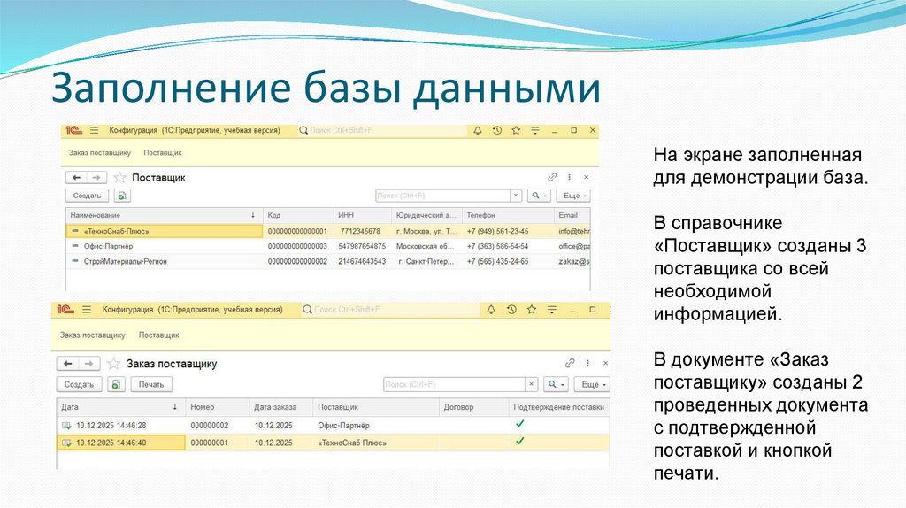 3. Заполнение демонстрационной базы: