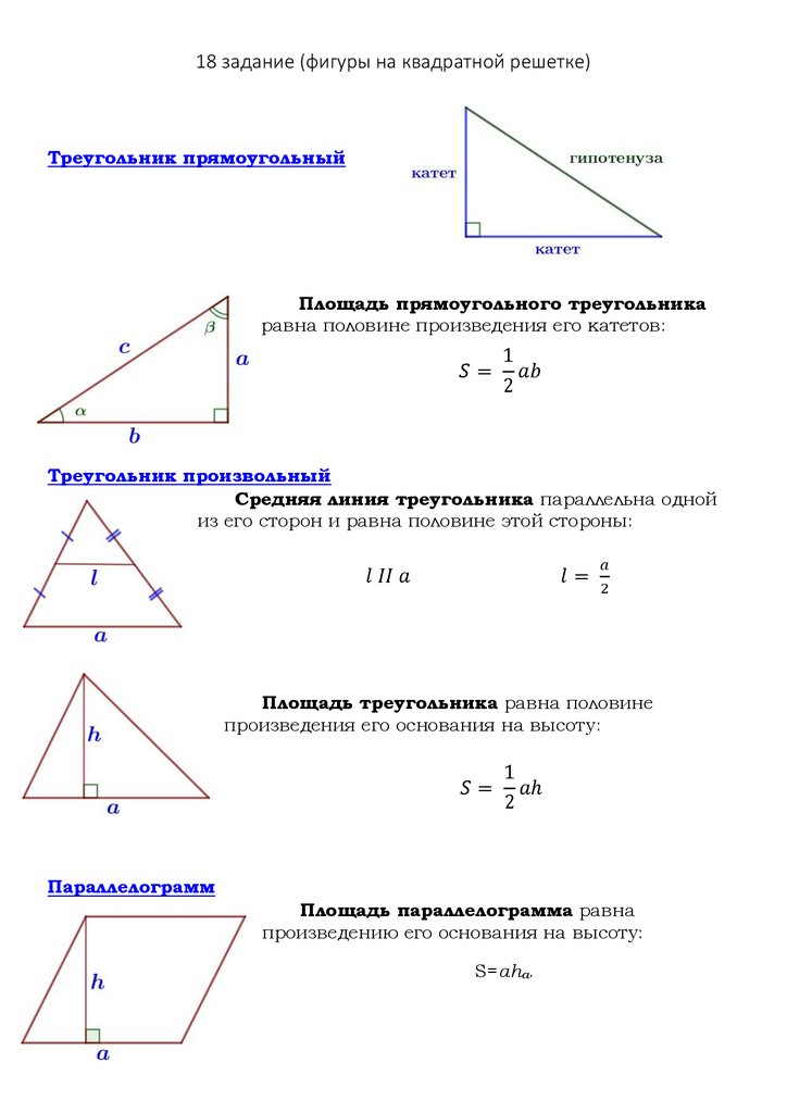 18 задание (фигуры на квадратной решетке)Треугольник прямоугольный