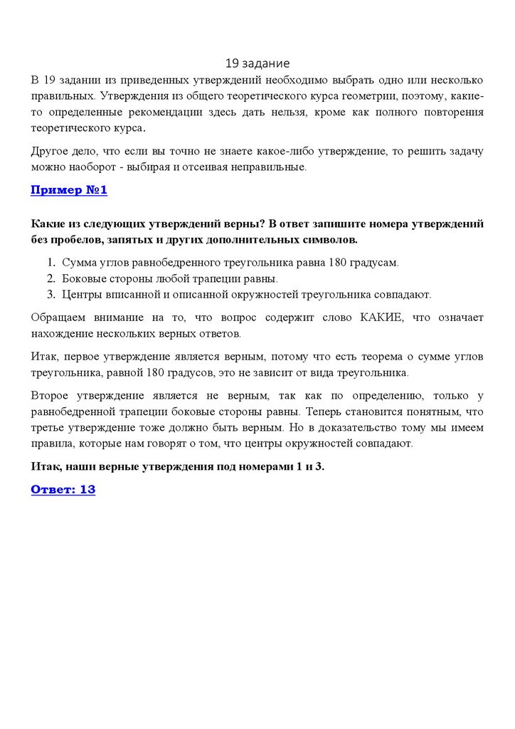 19 заданиеВ 19 задании из приведенных утверждений необходимо выбрать одно или несколько