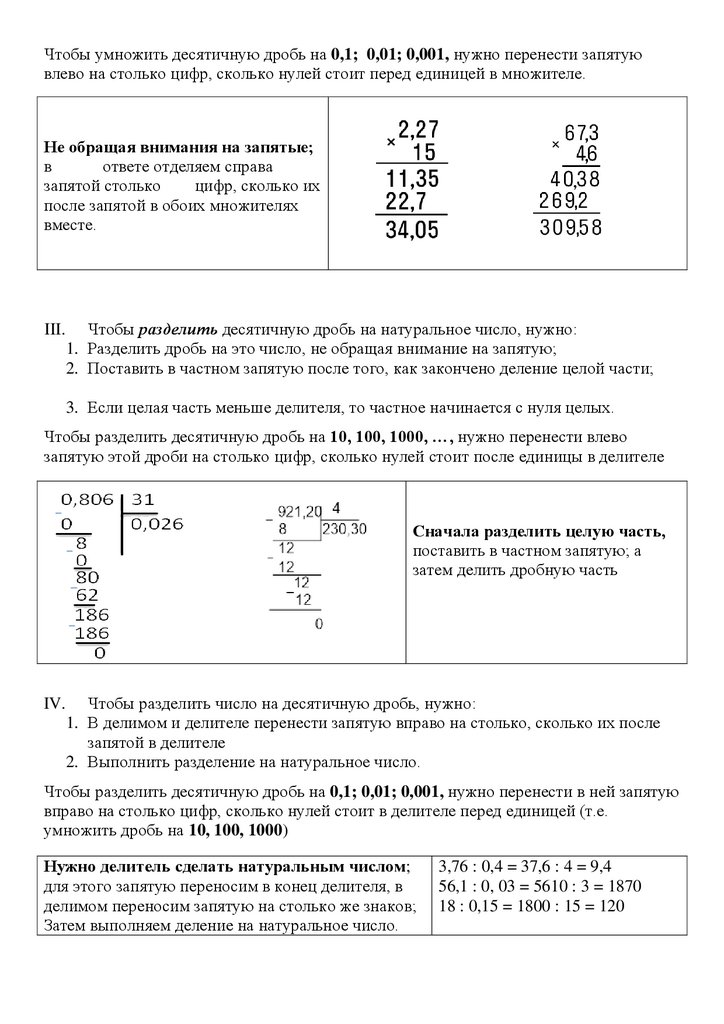 III. Чтобы разделить десятичную дробь на натуральное число, нужно: