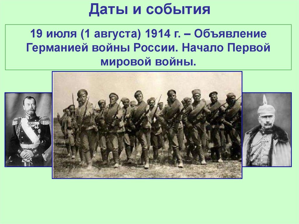 19 июля (1 августа) 1914 г. – ОбъявлениеГерманией войны России. Начало Первой