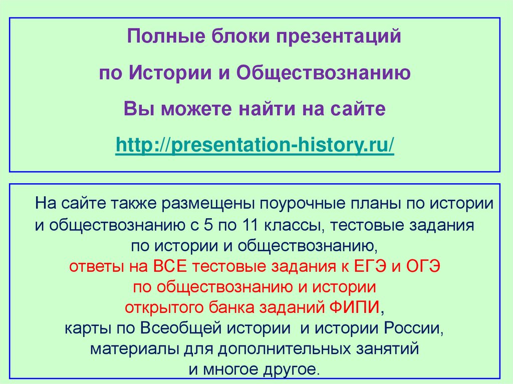 Полные блоки презентацийпо Истории и Обществознанию