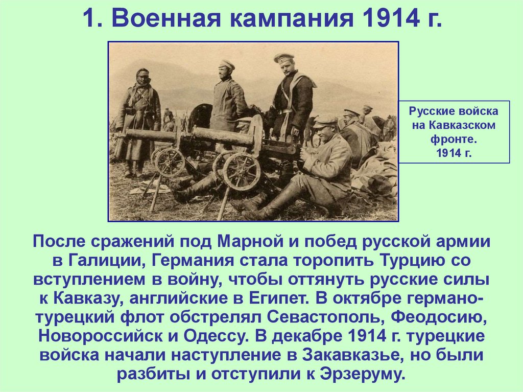 1. Военная кампания 1914 г.2. Военные действия в 1915 г.