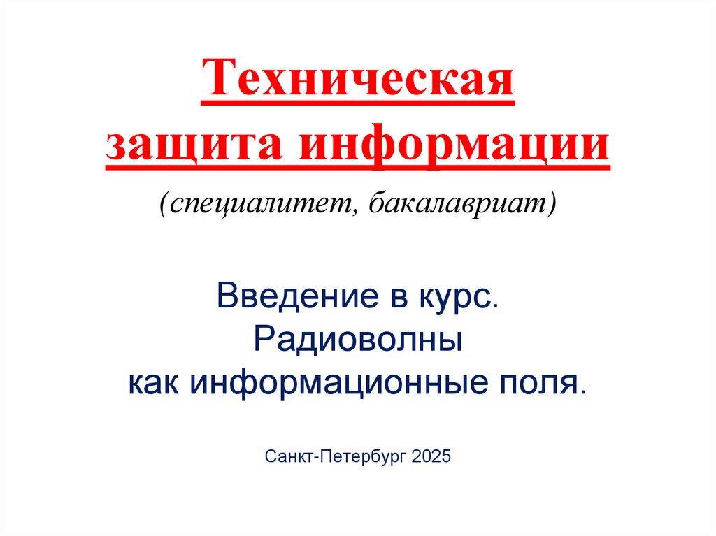 1. Техническая защита информации (специалитет, бакалавриат) Введение в курс. Радиоволны как информационные поля. Санкт-Петербург