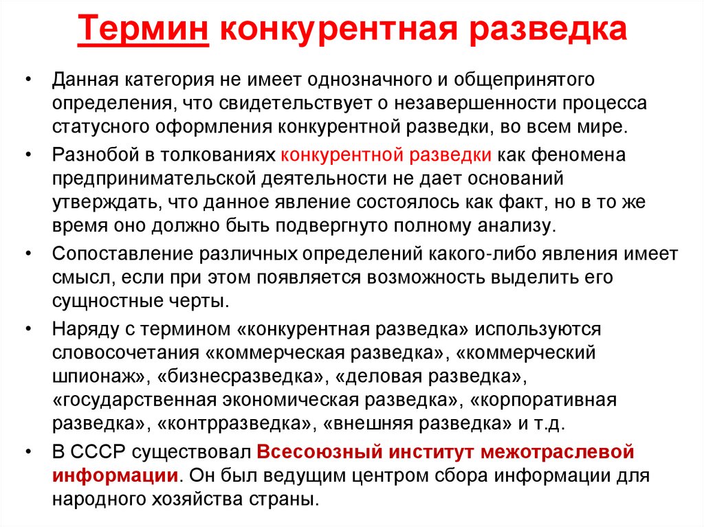 • Разнобой в толкованиях конкурентной разведки как феномена