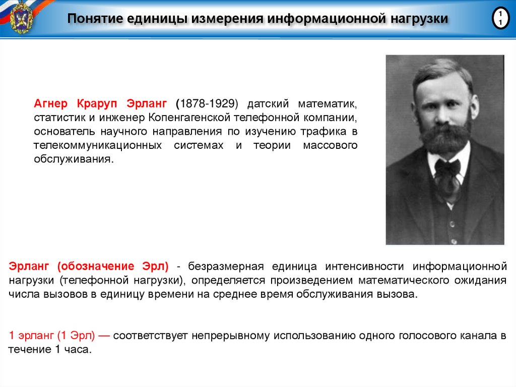 Эрланг (обозначение Эрл) - безразмерная единица интенсивности информационной