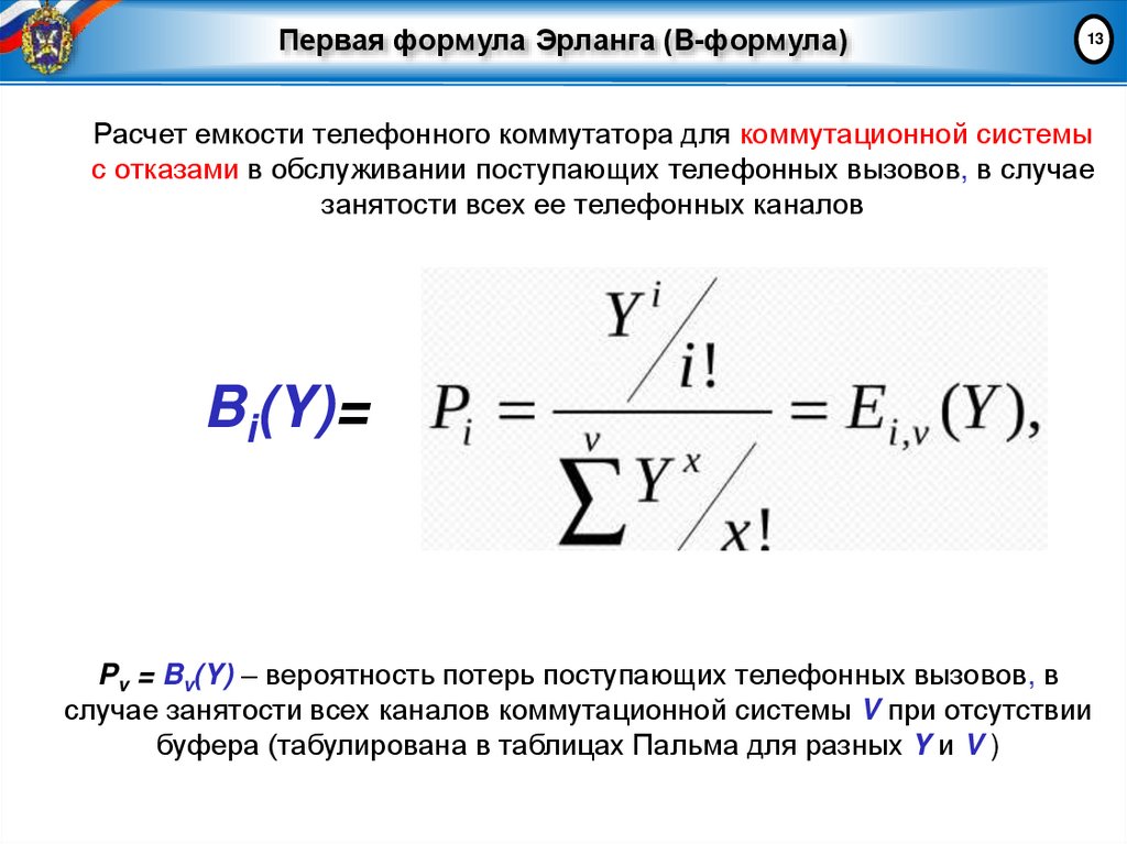 12Интенсивность нагрузки – среднее число вызовов, поступивших на вход системы