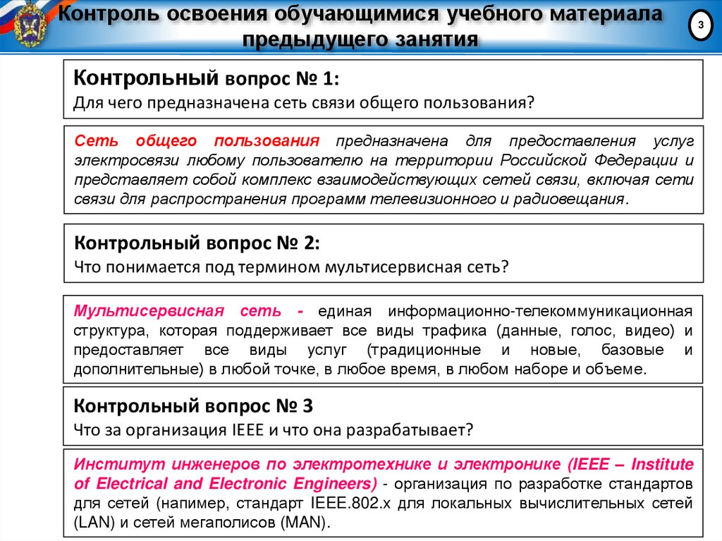 Контрольный вопрос № 1:Для чего предназначена сеть связи общего пользования?