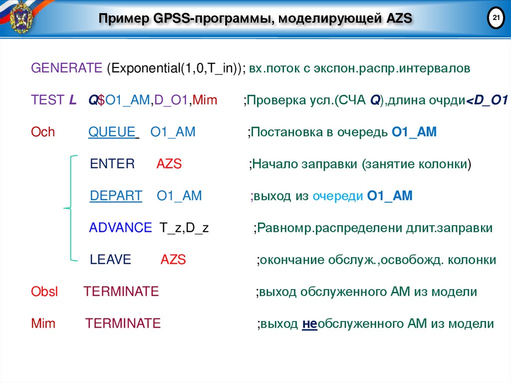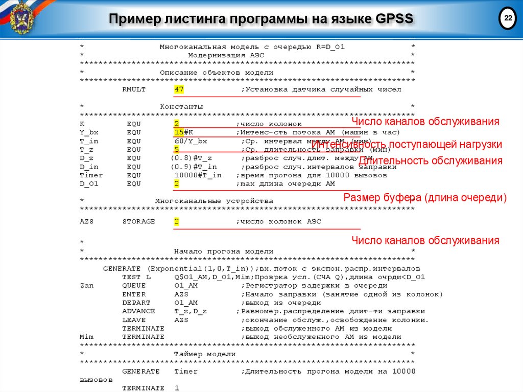 22. Пример листинга программы на языке GPSS