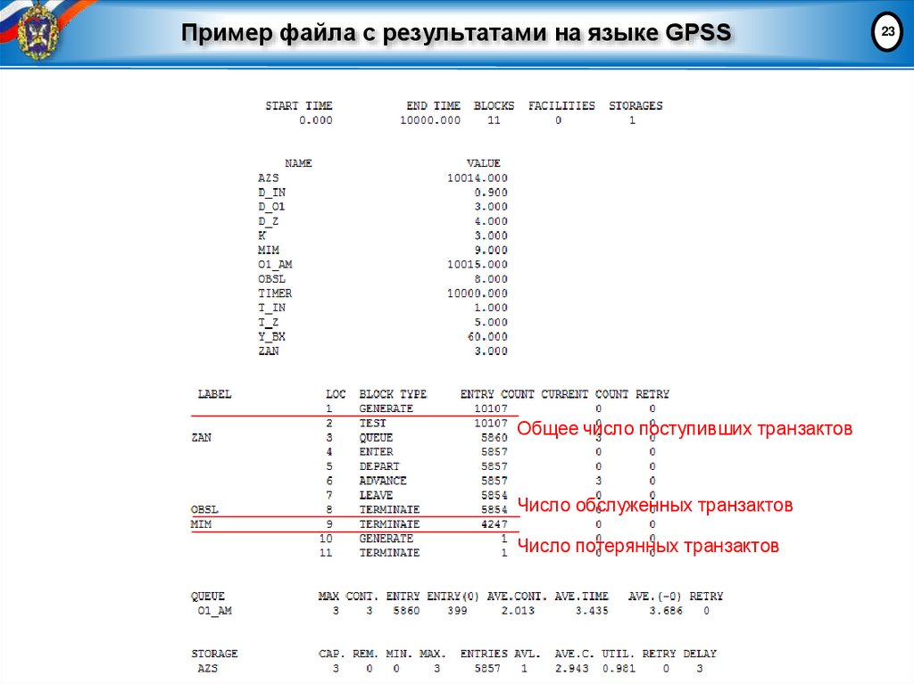 23. Пример файла с результатами на языке GPSS