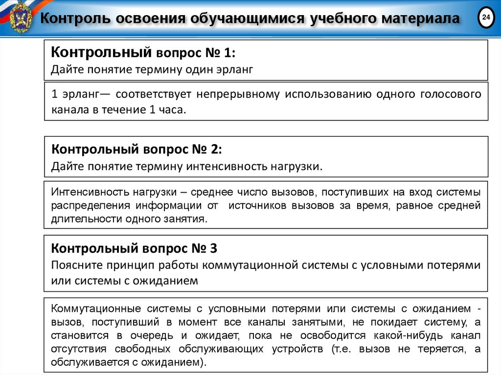 Контрольный вопрос № 1:Дайте понятие термину один эрланг