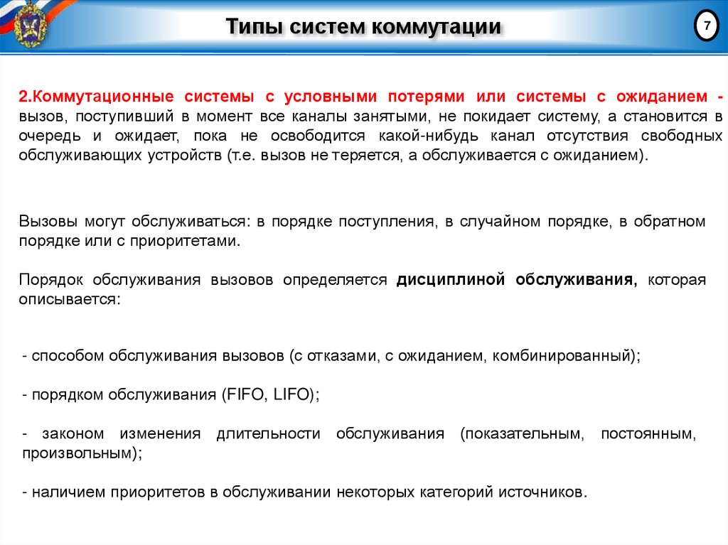 Порядок обслуживания вызовов определяется дисциплиной обслуживания, которая