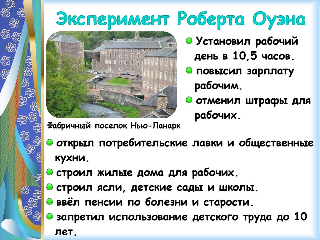 Фабричный поселок Нью-ЛанаркУстановил рабочий