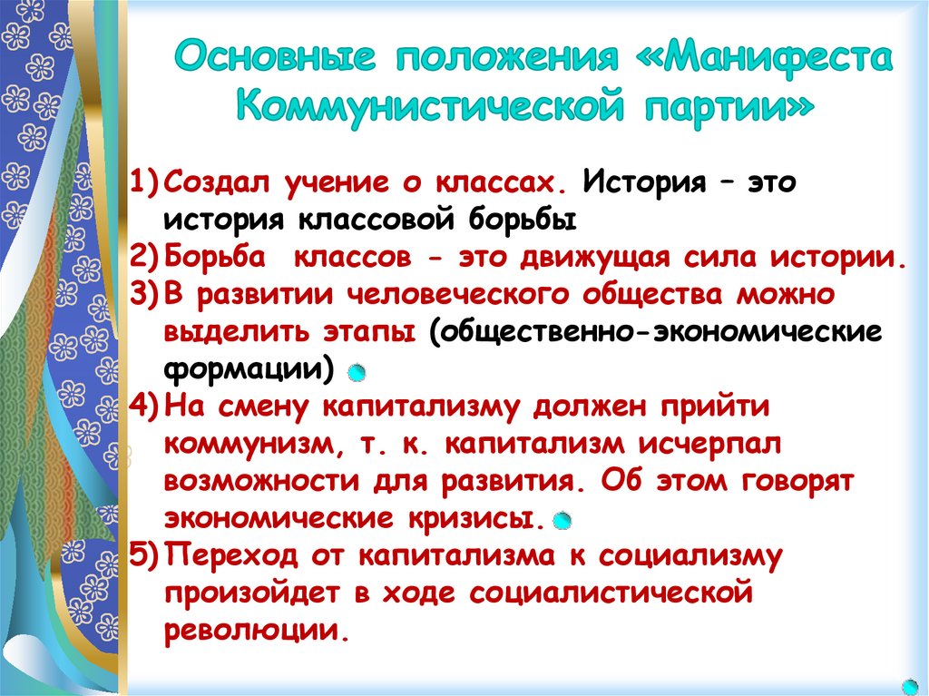1) Создал учение о классах. История – этоистория классовой борьбы