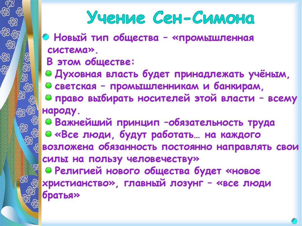 Анри Сен-Симон (французскийфилософ) – разработал учение о