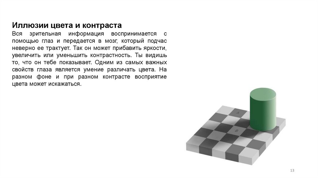 • Наши глаза так воспринимают идущий от предмета свет, что в мозг приходит ошибочная