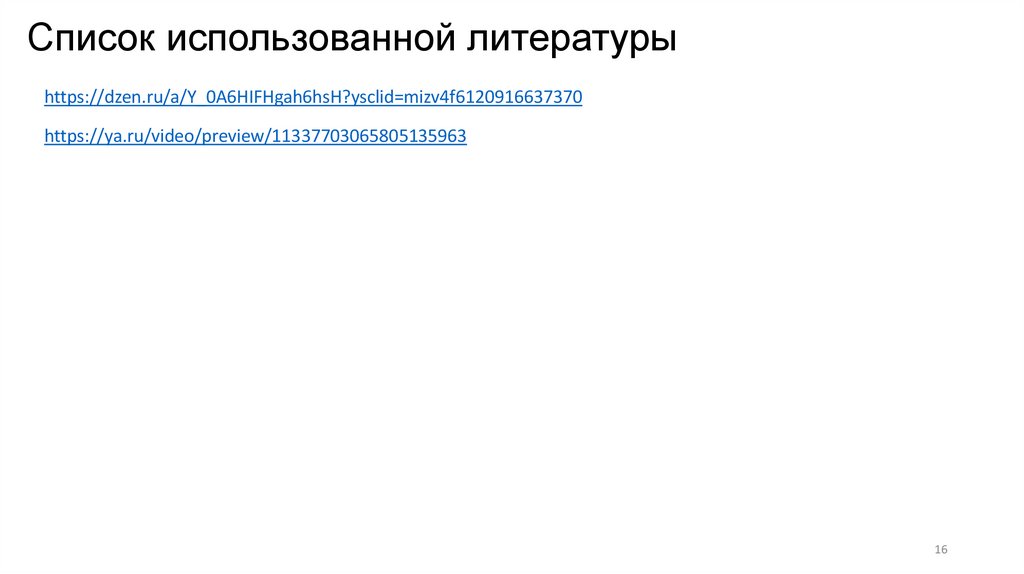 Список использованной литературыhttps://dzen.ru/a/Y_0A6HIFHgah6hsH?ysclid=mizv4f6120916637370