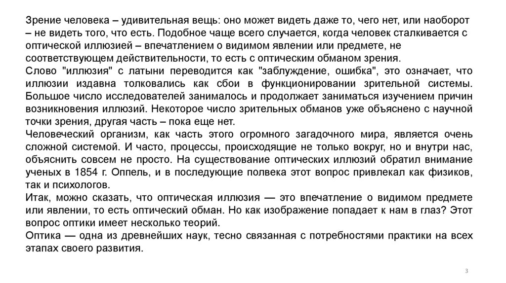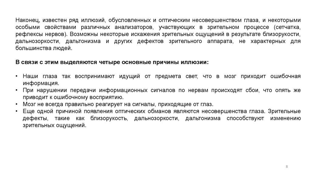 возникновения иллюзий. Некоторое число зрительных обманов уже объяснено с научной