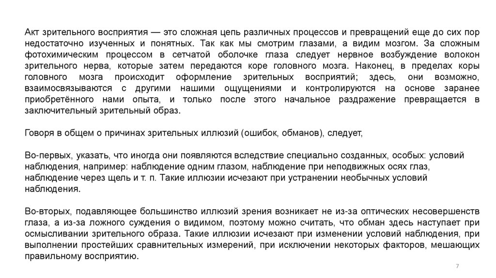 Говоря в общем о причинах зрительных иллюзий (ошибок, обманов), следует,