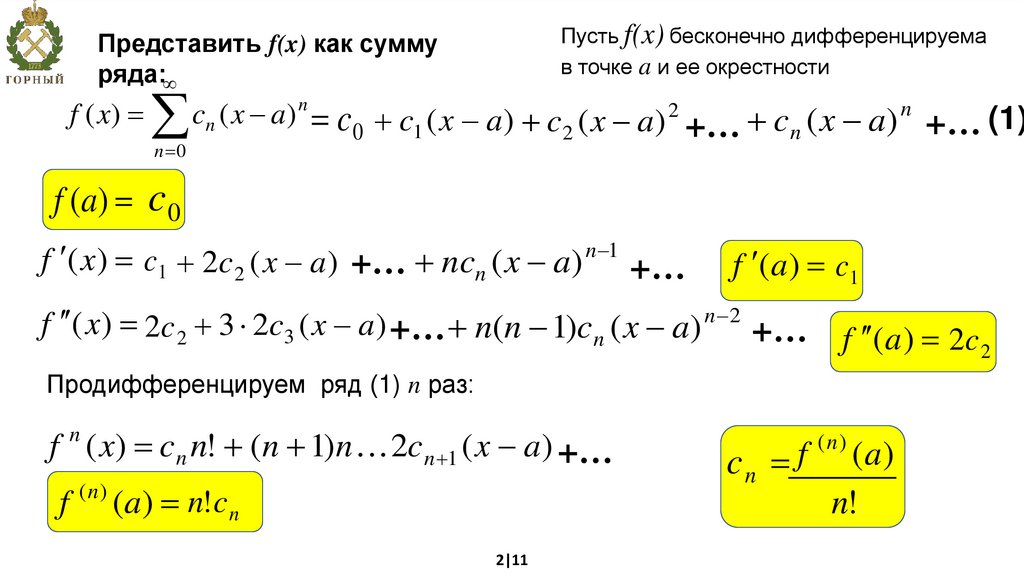 f (x) c1 2c 2 ( x a ) +… ncn ( x a) +…