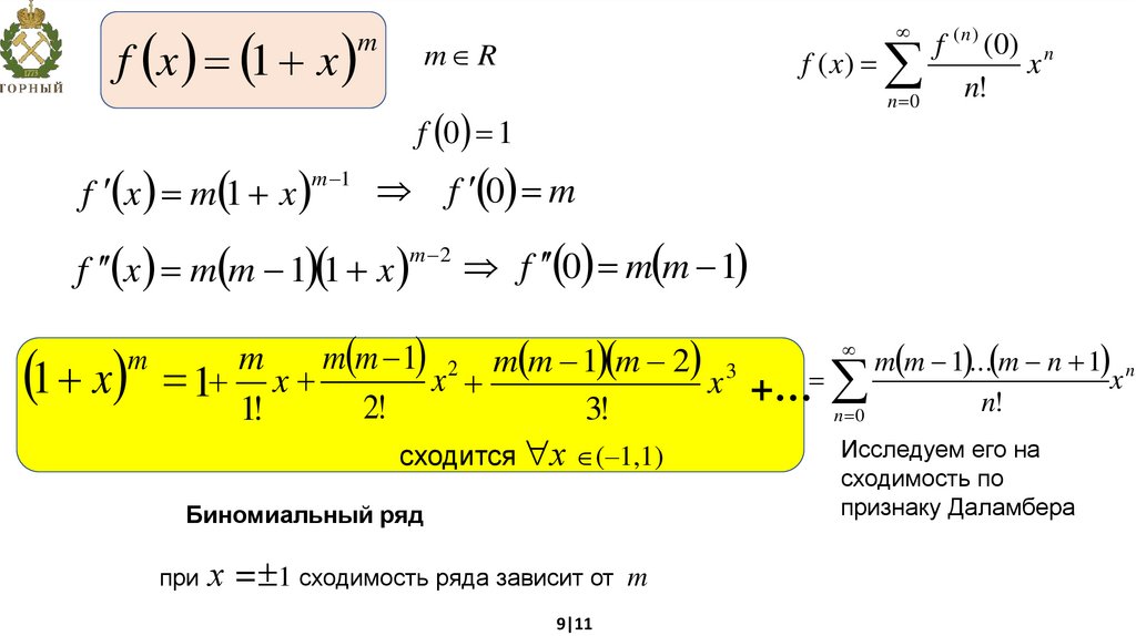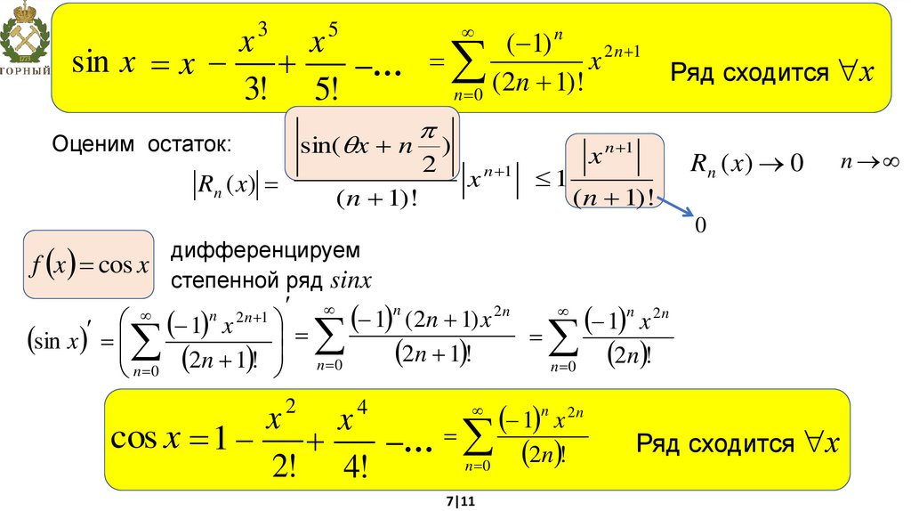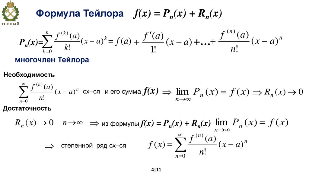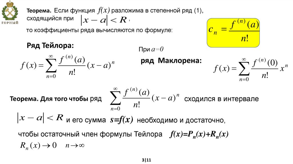 ( x a) n сх–ся и его сумма f(x) lim Рn ( x) f ( x) R n ( x ) 0