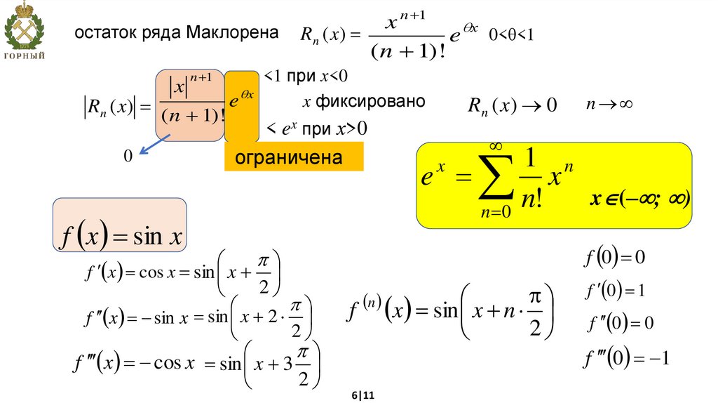 из формулы f(x) = Pn(x) + Rn(x) lim Рn ( x) f ( x)