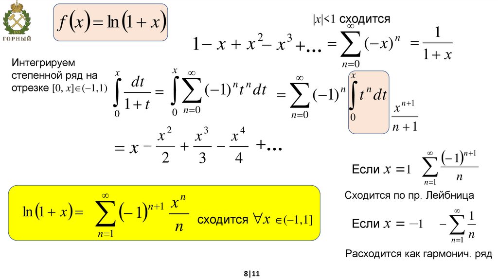 Пример 1. Разложить в ряд по степеням x (ряд Маклорена) функцию1 1