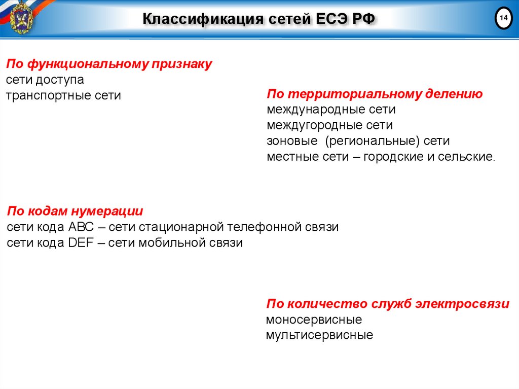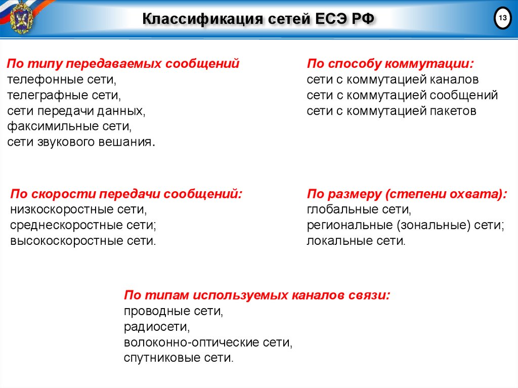 2. Классификация сетей Единой сети электросвязи РФ.