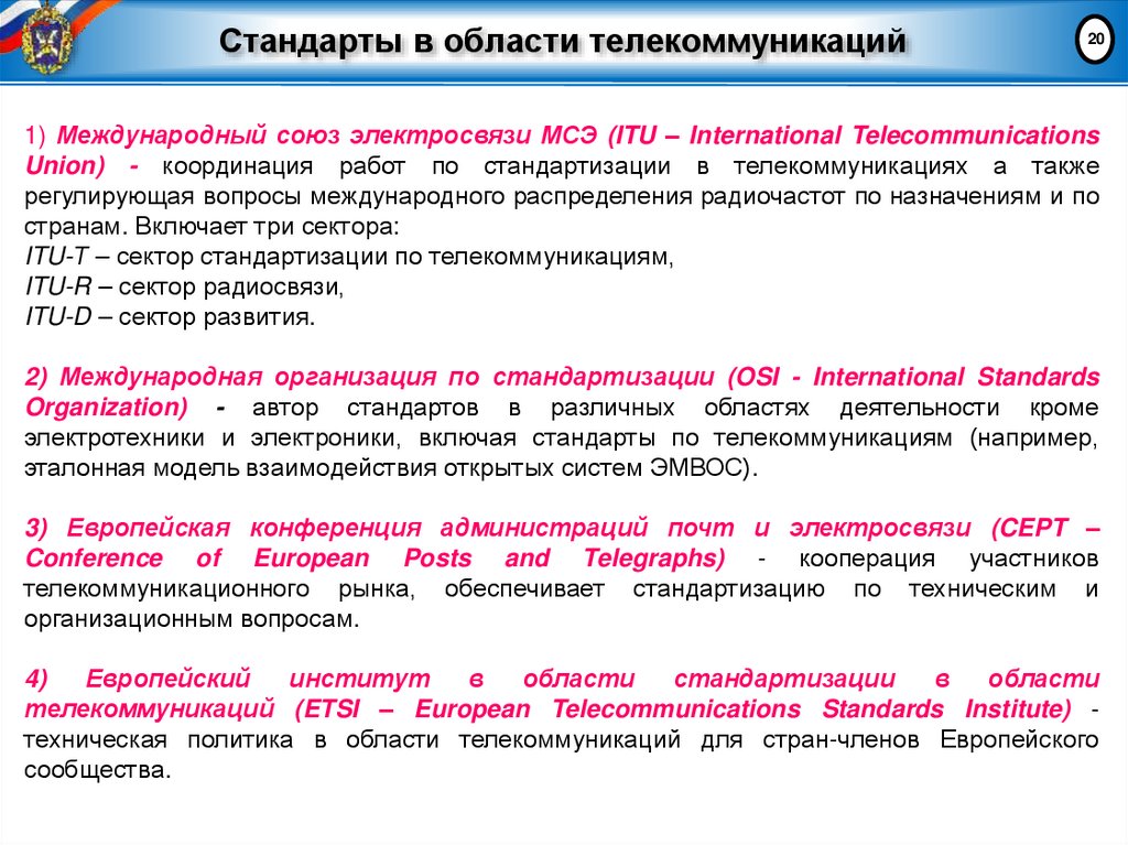 20. Стандарты в области телекоммуникаций