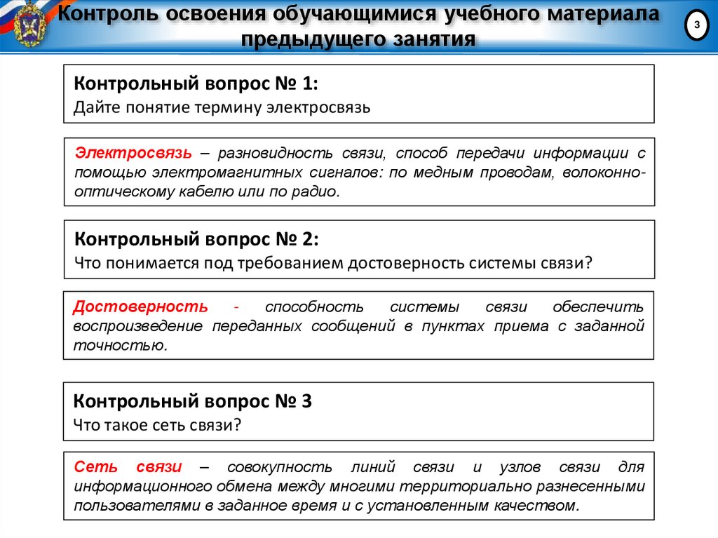 Контрольный вопрос № 1:Дайте понятие термину электросвязь