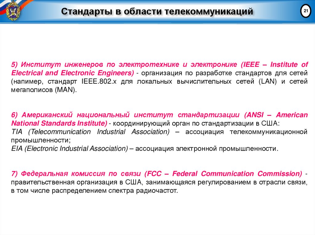 21. Стандарты в области телекоммуникаций