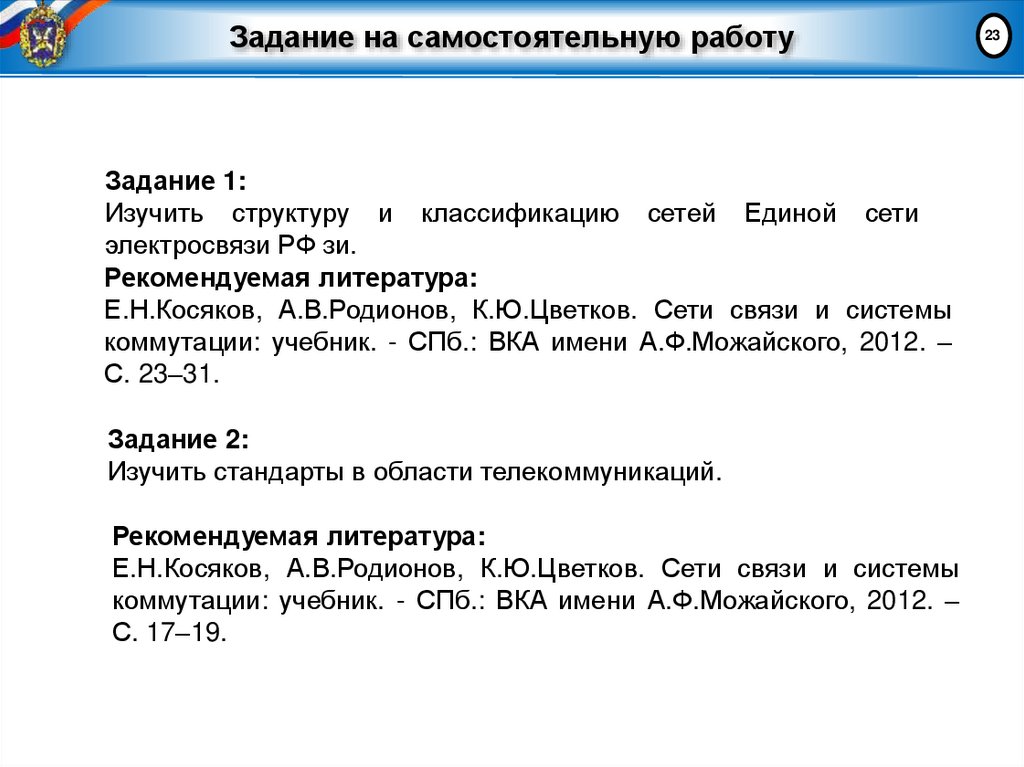 23. Задание на самостоятельную работу