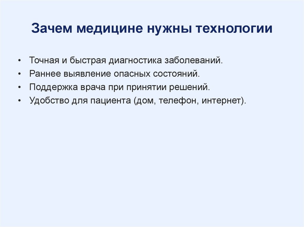Зачем медицине нужны технологииТочная и быстрая диагностика заболеваний.