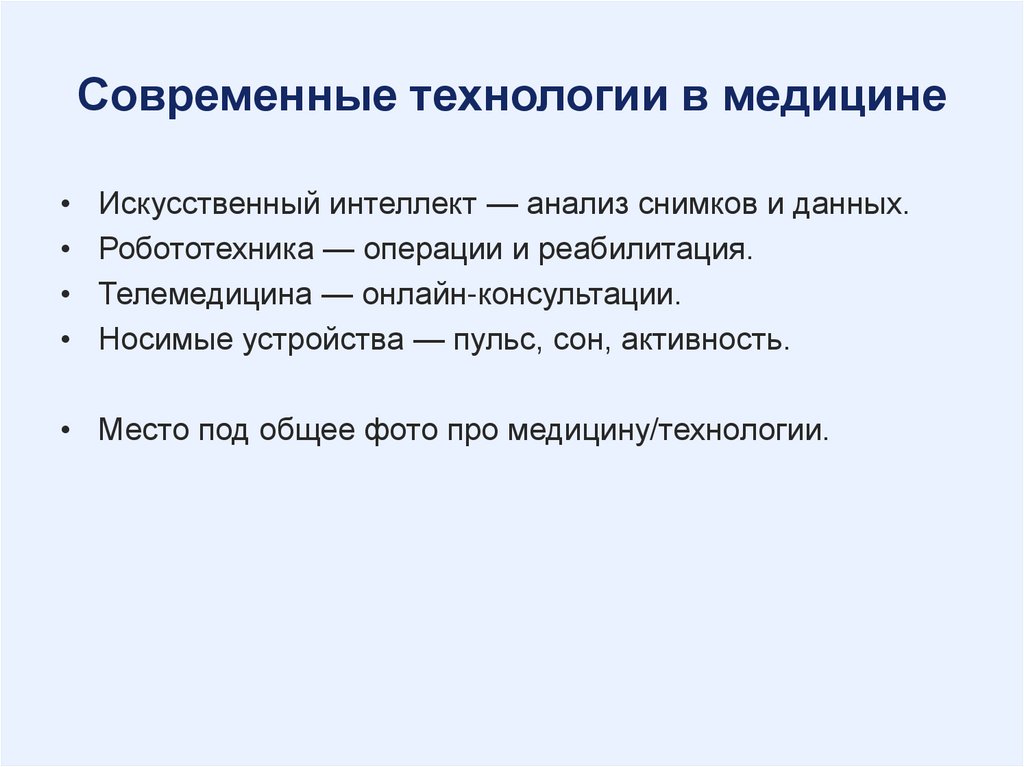 Современные технологии в медицинеИскусственный интеллект — анализ снимков и данных.