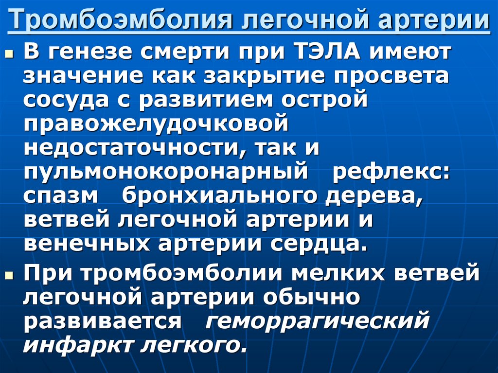 В генезе смерти при ТЭЛА имеютзначение как закрытие просвета