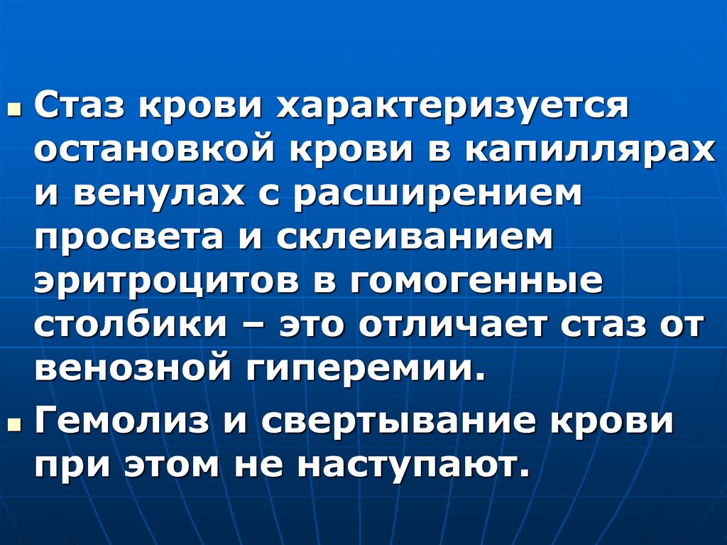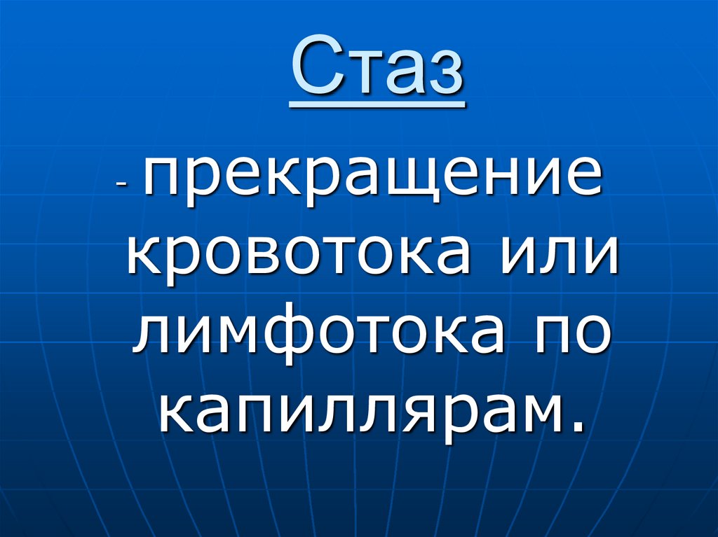 Стаз крови характеризуетсяостановкой крови в капиллярах