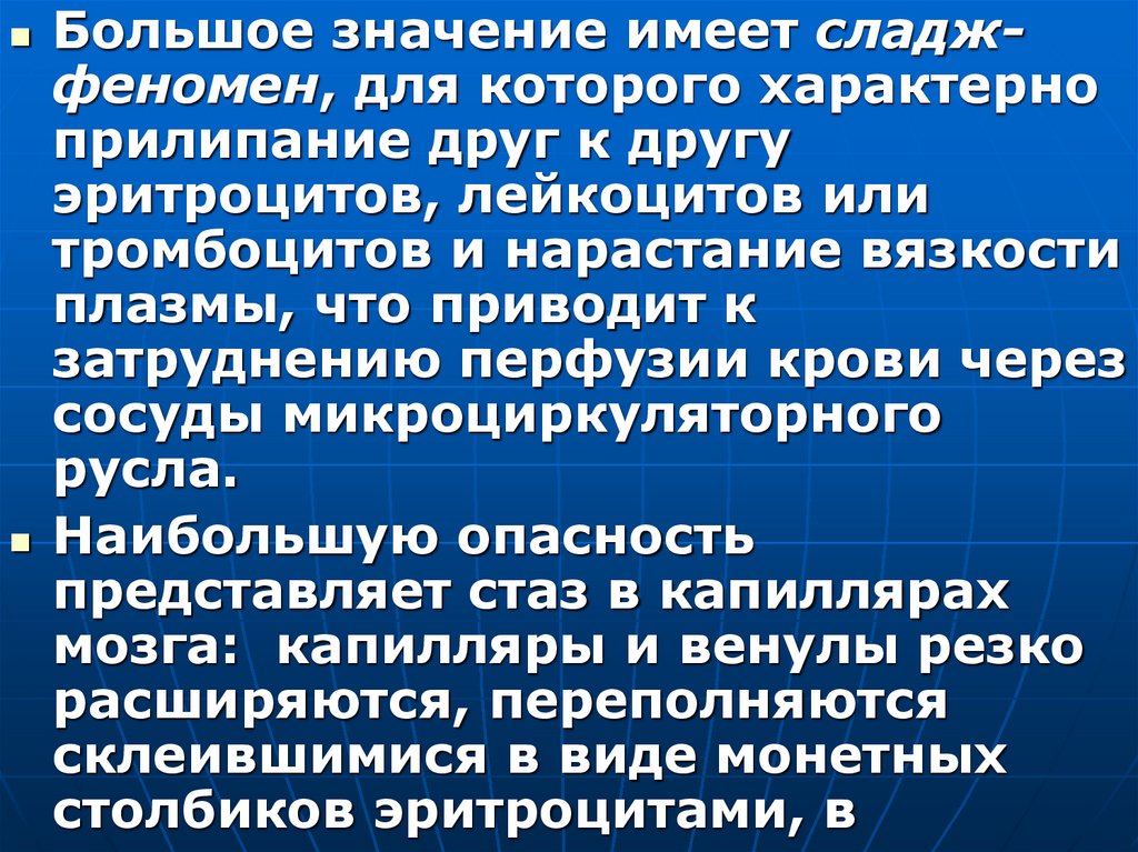Большое значение имеет сладжфеномен, для которого характерноприлипание друг к другу