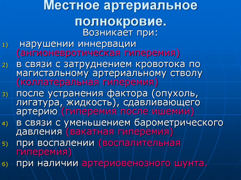 5. Эмоциональные.15. Типы артериальной гиперемии