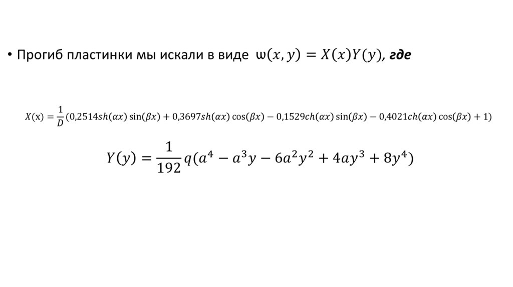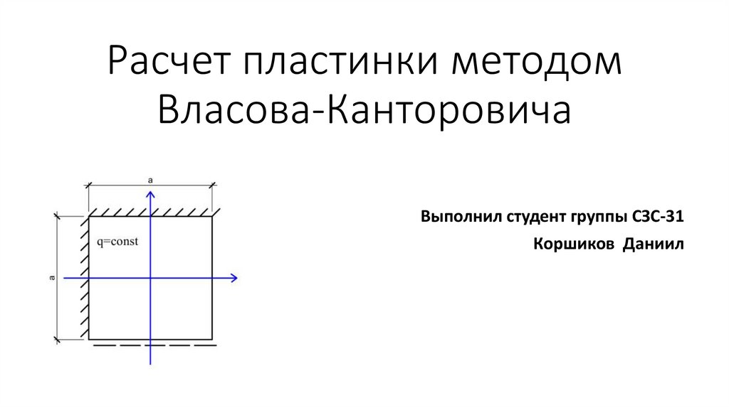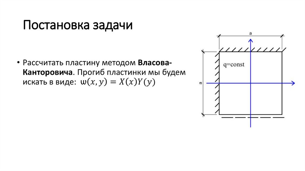• Рассчитать пластину методом ВласоваКанторовича. Прогиб пластинки мы будем