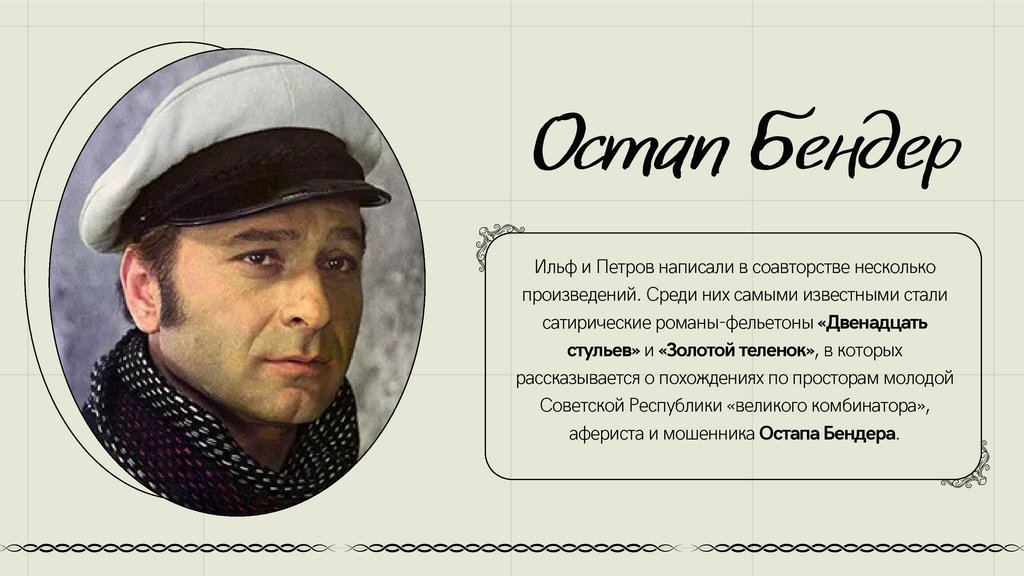 Остап БендерИльф и Петров написали в соавторстве несколько