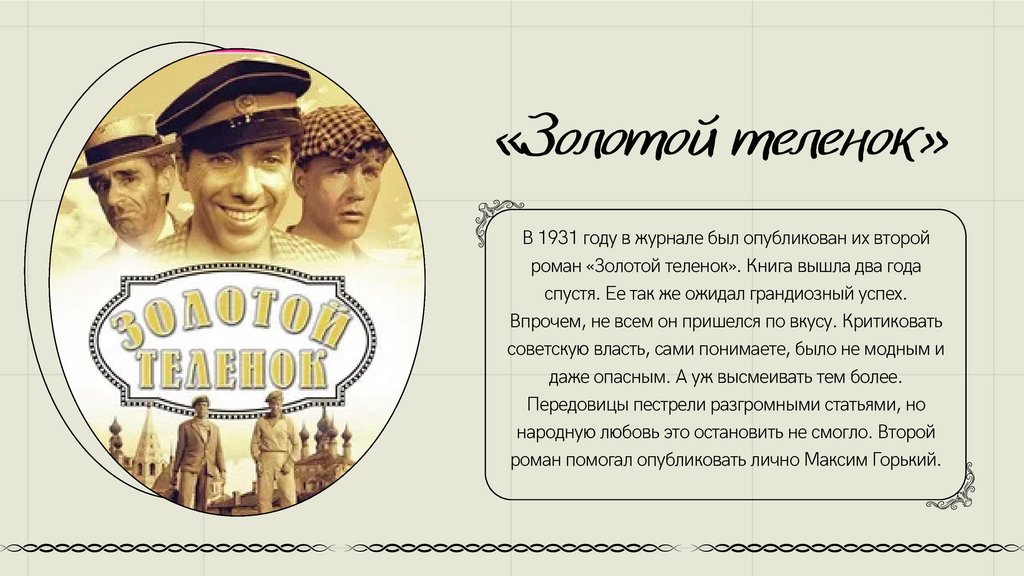 «Золотой теленок»В 1931 году в журнале был опубликован их второй