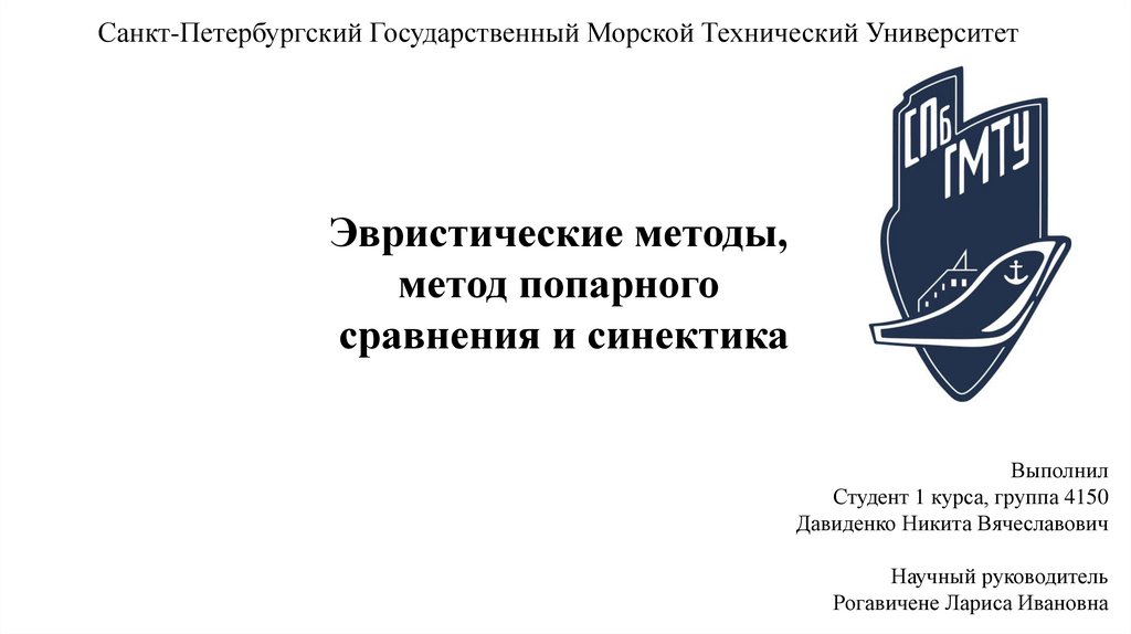 Санкт-Петербургский Государственный Морской Технический УниверситетЭвристические методы,
